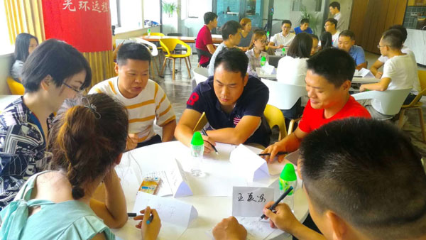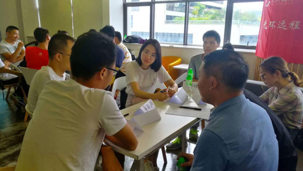參會的人員每人說一個自己想要去的地方,然后以深圳為軸心分東西的排成一個長隊,主持人會隨機抽一兩個人問他要去哪里,然后根據他的回答參照左右兩邊的人要去的地方,看有沒有站錯位置,如果錯了就受到一定的懲罰,最后讓大家報數分組,并在組內選出一名組長,整個過程充滿歡聲笑語,大家也漸漸打破了彼此的陌生感。