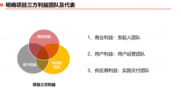 先看明確項目三方利益團(tuán)隊及代表:1、代表商業(yè)利益的團(tuán)隊;2、代表用戶利益的團(tuán)隊;3、代表供應(yīng)商利益的團(tuán)隊:實施交付團(tuán)隊,項目組要分類三類處理。