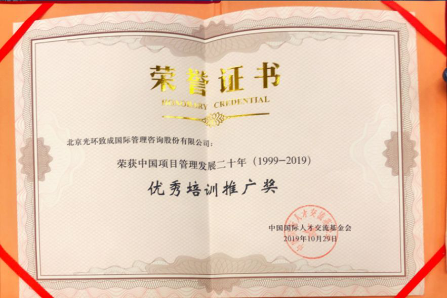 作為中國(guó)國(guó)際人才交流基金會(huì)授權(quán)的PMP?培訓(xùn)和PMP?考試機(jī)構(gòu),光環(huán)國(guó)際憑借多年在項(xiàng)目管理培訓(xùn)行業(yè)所秉持的服務(wù)理念及良好口碑再次突圍而出,榮獲“中國(guó)項(xiàng)目管理發(fā)展二十年優(yōu)秀培訓(xùn)推廣獎(jiǎng)”。