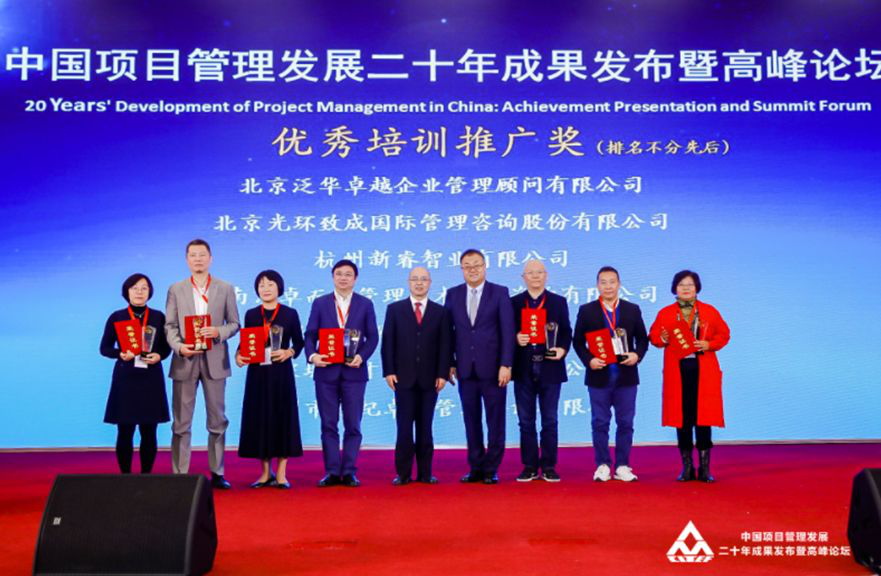在本次論壇中,中國(guó)國(guó)際人才交流基金會(huì)發(fā)布了《中國(guó)項(xiàng)目管理二十年發(fā)展報(bào)告》,對(duì)項(xiàng)目管理二十年的發(fā)展脈絡(luò)和中國(guó)項(xiàng)目管理與人才建設(shè)的發(fā)展趨勢(shì)進(jìn)行總結(jié)分析,并對(duì)近二十年來(lái)對(duì)我國(guó)項(xiàng)目管理發(fā)展做出突出貢獻(xiàn)的高校、企業(yè)及其他組織進(jìn)行了表彰,光環(huán)國(guó)際管理咨詢(xún)集團(tuán)在大會(huì)上榮獲“中國(guó)項(xiàng)目管理發(fā)展二十年優(yōu)秀培訓(xùn)推廣獎(jiǎng)”。