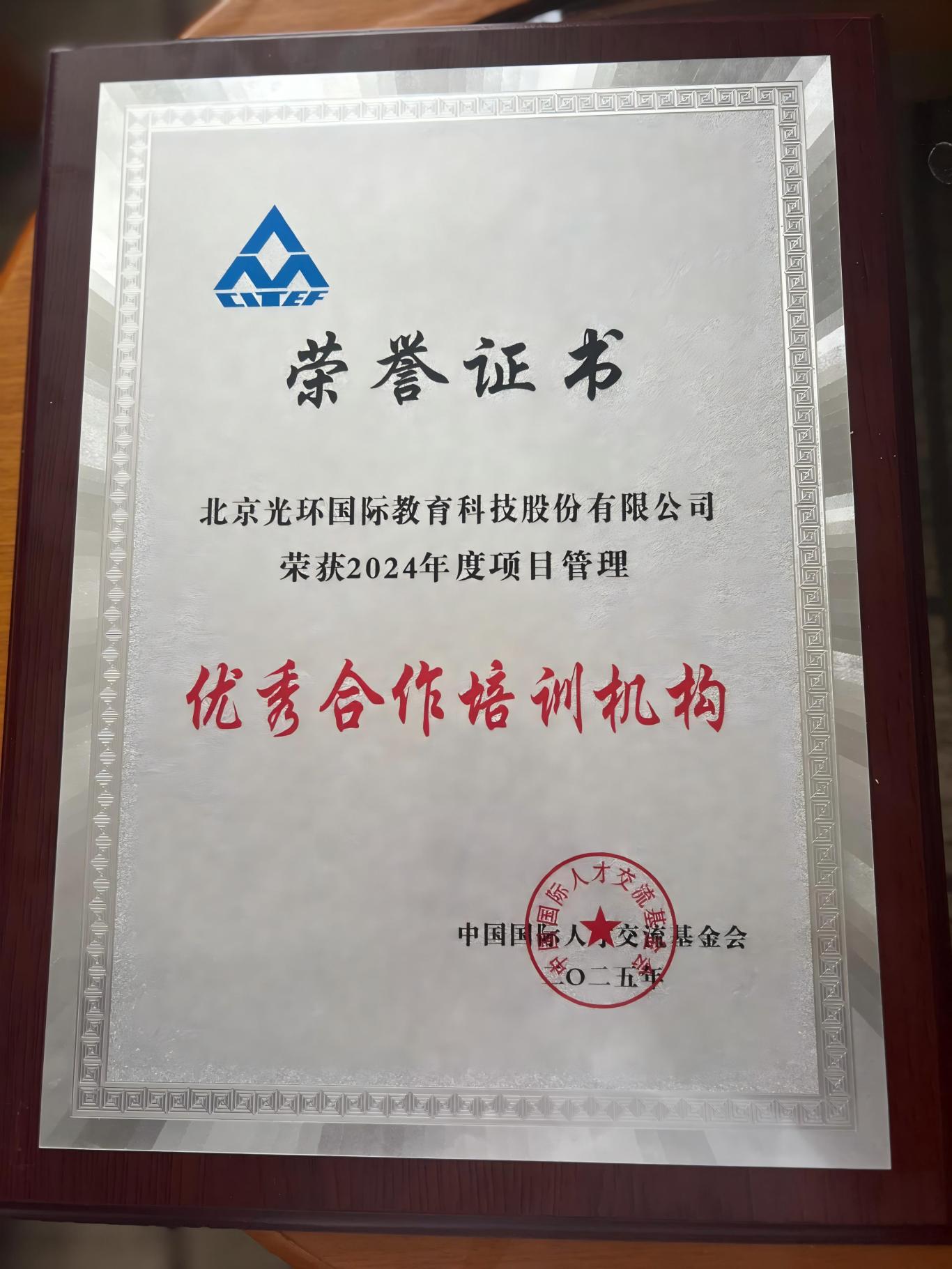 2025年4月15日,中國(guó)國(guó)際人才交流基金會(huì)在北京中土大廈隆重召開(kāi)“2025國(guó)際先進(jìn)知識(shí)體系引進(jìn)推廣工作年會(huì)”。會(huì)議對(duì)在引進(jìn)和推廣國(guó)際先進(jìn)知識(shí)體系工作中做出突出貢獻(xiàn)的機(jī)構(gòu)進(jìn)行了表彰,光環(huán)國(guó)際憑借在項(xiàng)目管理領(lǐng)域的卓越貢獻(xiàn),再次榮獲“2024年度項(xiàng)目管理優(yōu)秀合作培訓(xùn)機(jī)構(gòu)”稱號(hào),至今已連續(xù)多年蟬聯(lián)。